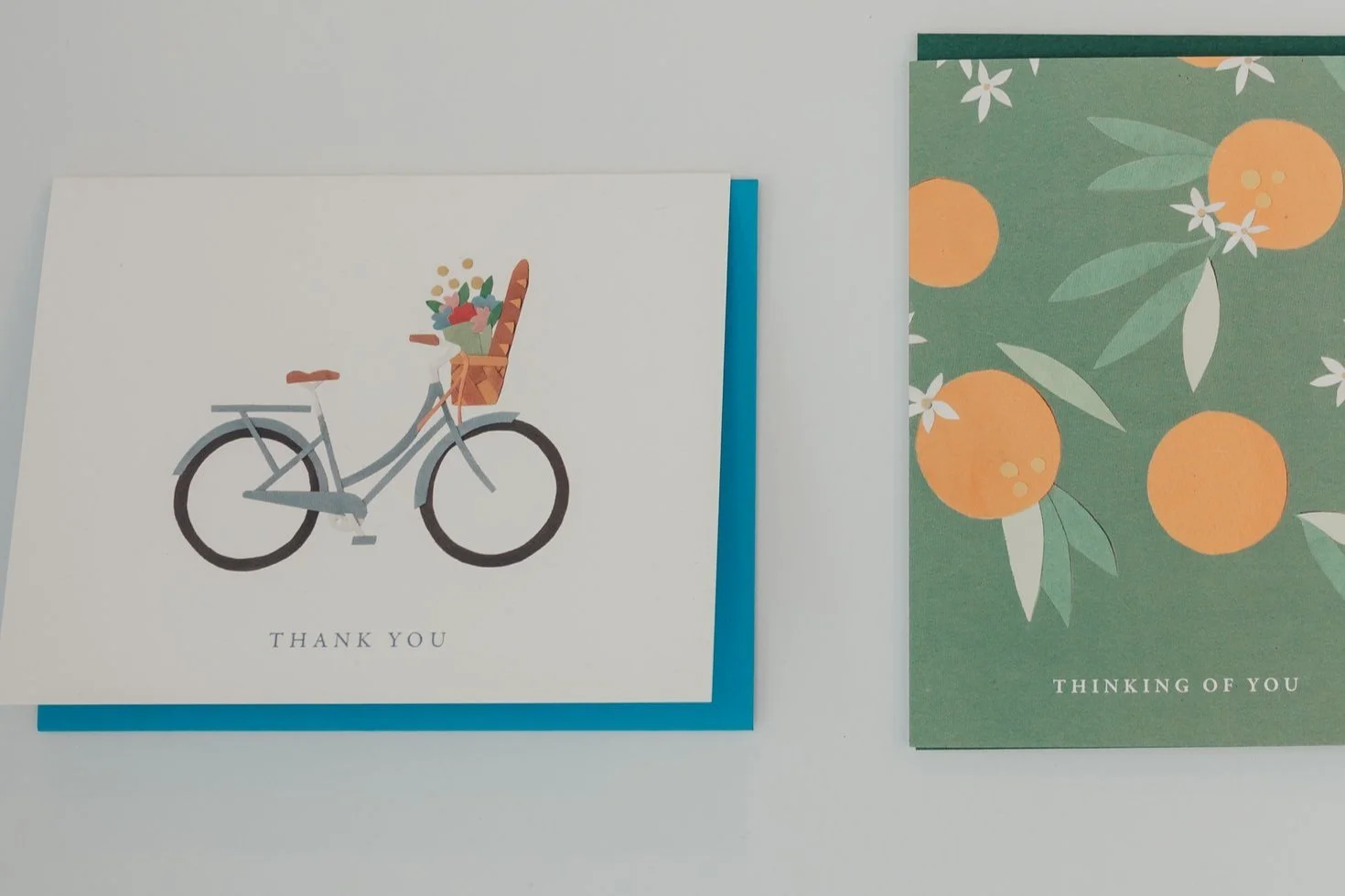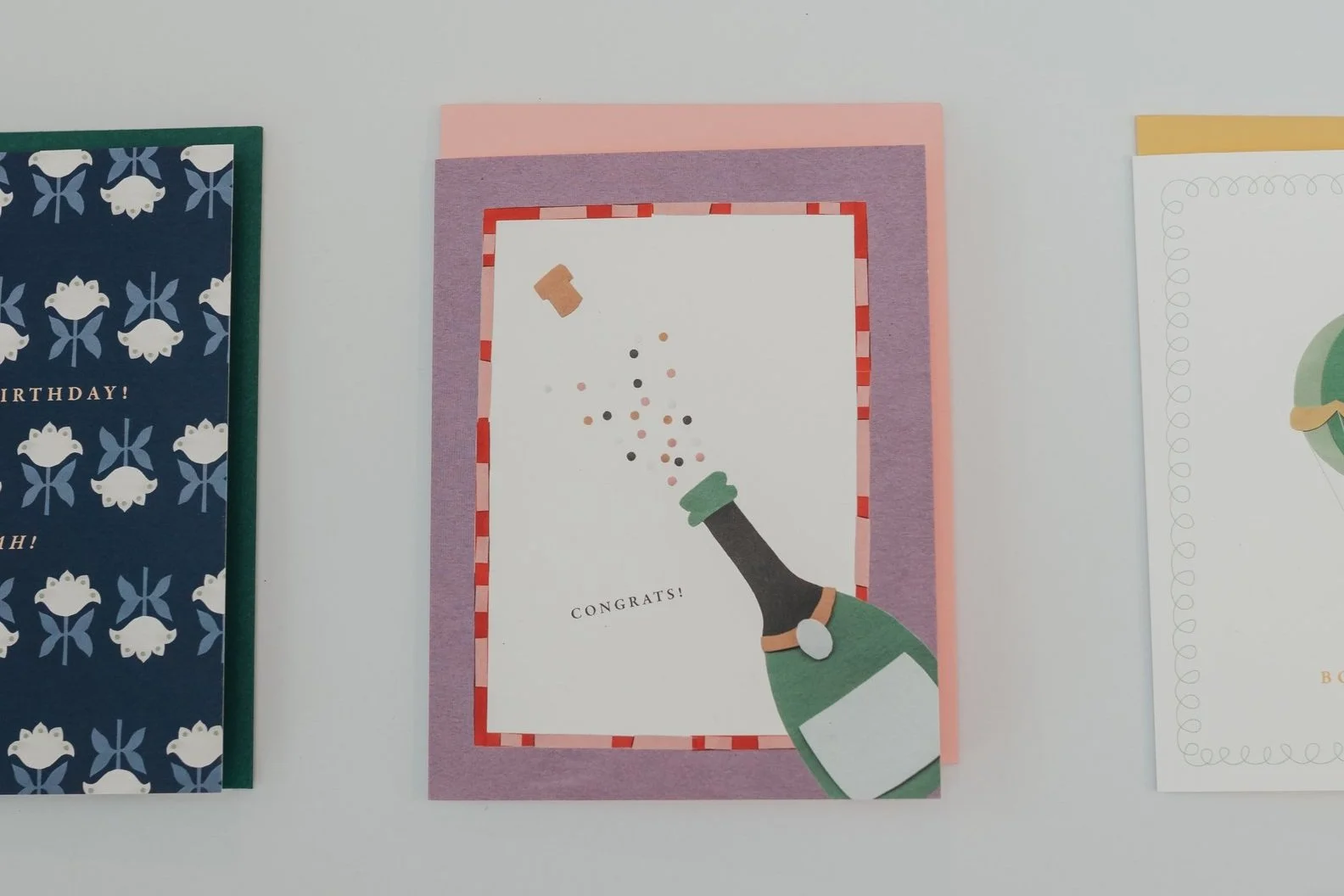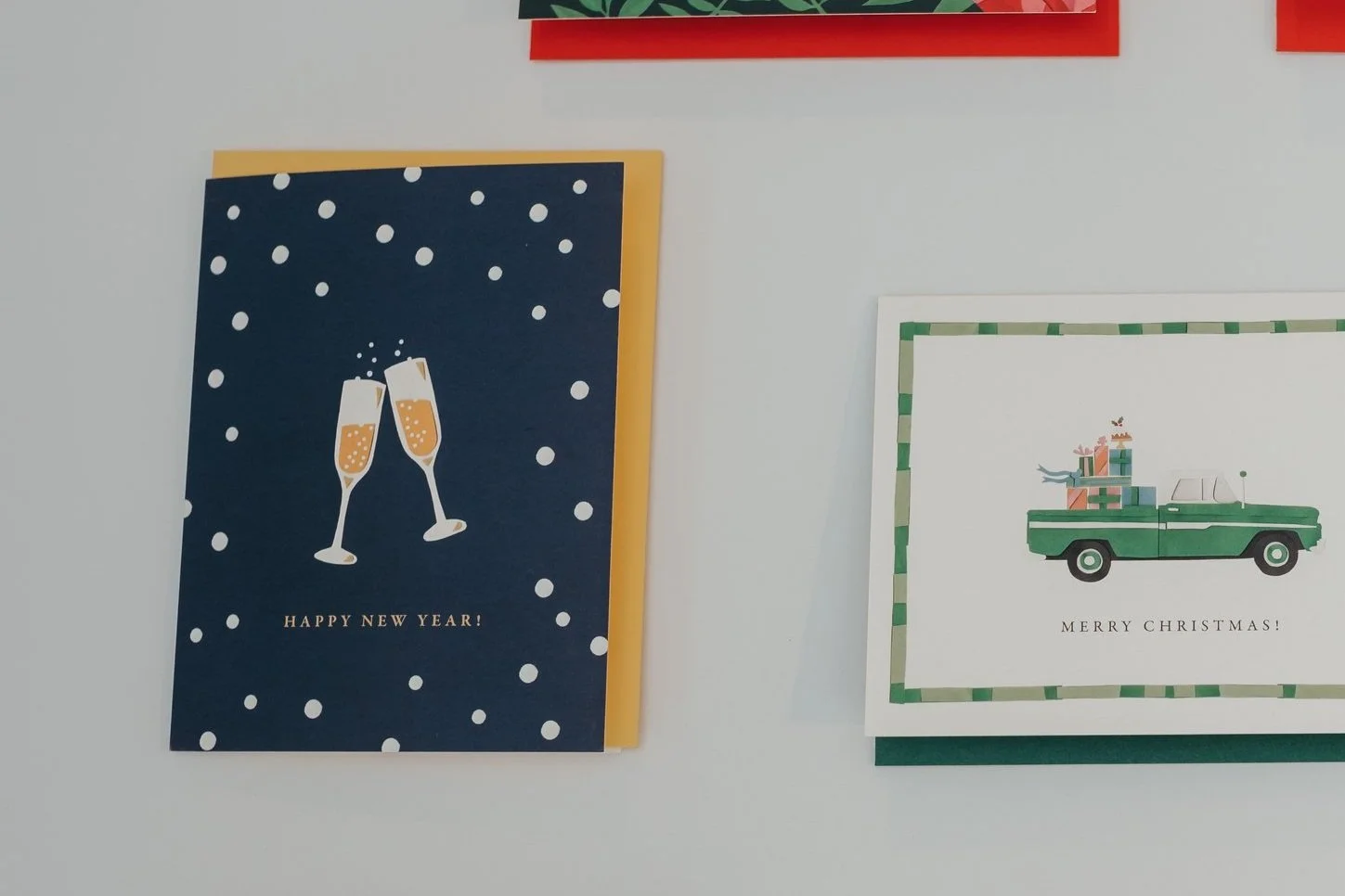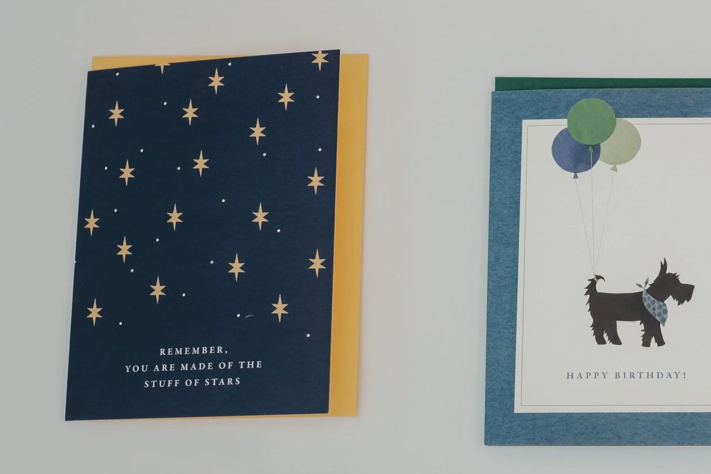LUXURIOUS , RECYCLED PAPER MEANS EACH CARD IS AS ENVIRONMENTALLY FRIENDLY AS IT IS BEAUTIFUL. BLANK INSIDE SO YOU CAN SHARE HOW YOU FEEL. GREETING CARDS Categories: Select a Category GRATITUDE BABY BON VOYAGE CONGRATULATIONS CHRISTMAS SUPPORT THINKING OF YOU THANK YOU BIRTHDAY IN-A-PINCH PACKS GRATITUDE | BABY | BON VOYAGE | CONGRATULATIONS | CHRISTMAS | SUPPORT | THINKING OF YOU | THANK YOU | BIRTHDAY | IN-A-PINCH PACKS | Pop Champagne Congrats! $6.00 Encouragement: You are Made of the Stuff of Stars $6.00 Encouragement: Go Get 'Em, Tiger $6.00 Champagne Tower: Let's Celebrate! $6.00 Festive Fall Foliage: Thankful $6.00 Bon Voyage! Hot Air Balloon $6.00 New Year's: Clinking Champagne Glasses $6.00 You're the Best $6.00 Welcome, Baby $6.00 Pink Woodblock Print Birthday Card $6.00 Blue Woodblock Print Birthday Card $6.00 Birthday Party Balloons Card $6.00 Marigolds: Thinking of You $6.00 Primula Birthday Card $6.00 Cars Birthday Card $6.00 Vintage Wagon Birthday Card $6.00 Blue Thank You $6.00 Scotty Dog Birthday Card $6.00 A Dino-Mite Birthday $6.00 Scotty Dog Sending Love $6.00 Pirate Mouse Birthday Card $6.00 Make a Birthday Splash! $6.00 Pink Birthday Bike $6.00 Blue Marigold: Thank You $6.00 So Sweet $6.00 Blue Bicycle Thank You $6.00 Yellow Marigold: In My Thoughts $6.00 Geranium Thinking of You $6.00 Oranges Thinking of You $6.00 Christmas Candles $6.00 Christmas Pick Up $6.00 Vintage Christmas Tree Ornaments $6.00 Christmas Tree and Car $6.00 Noel Angel $6.00 Christmas Candle $6.00 Poinsettia $6.00