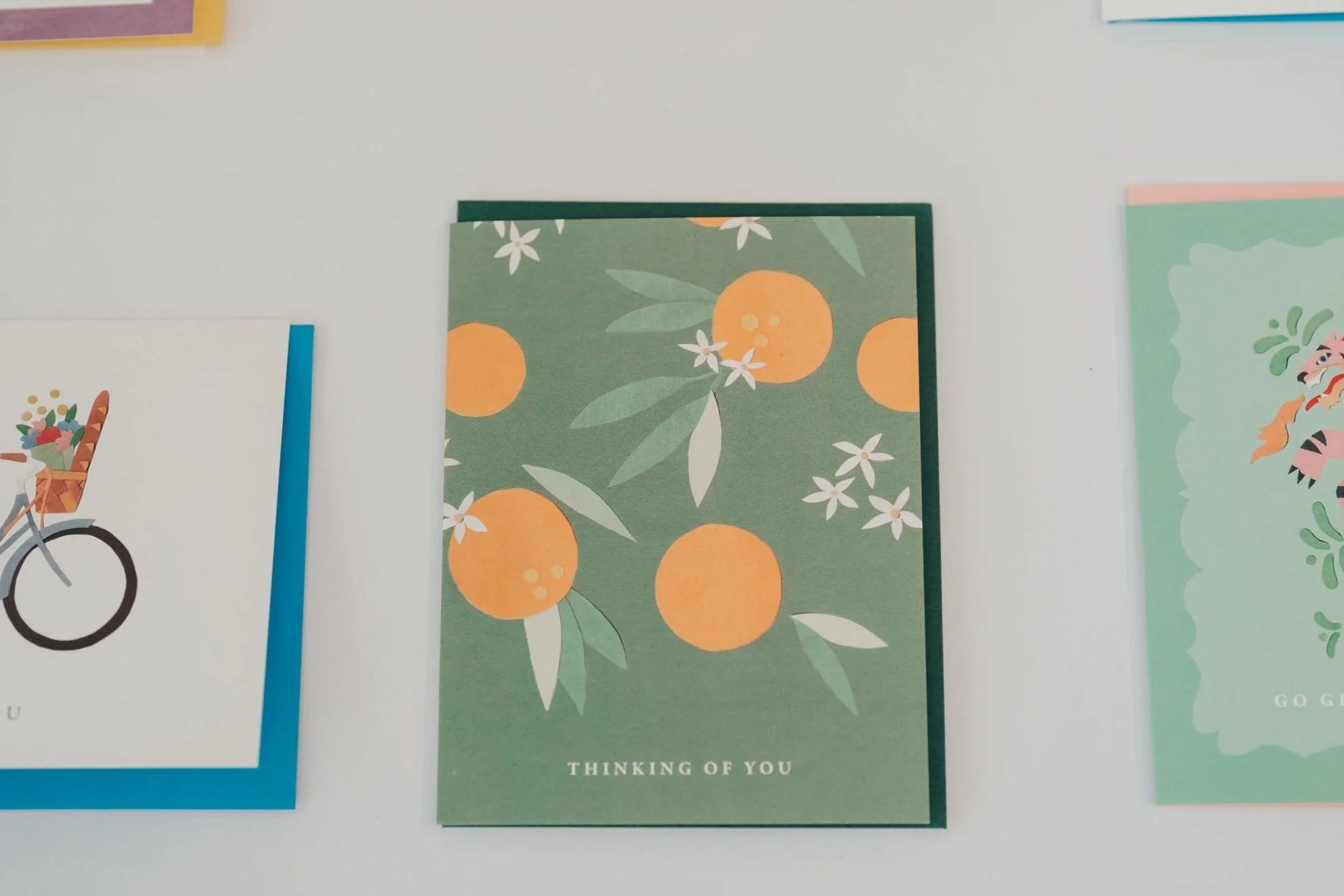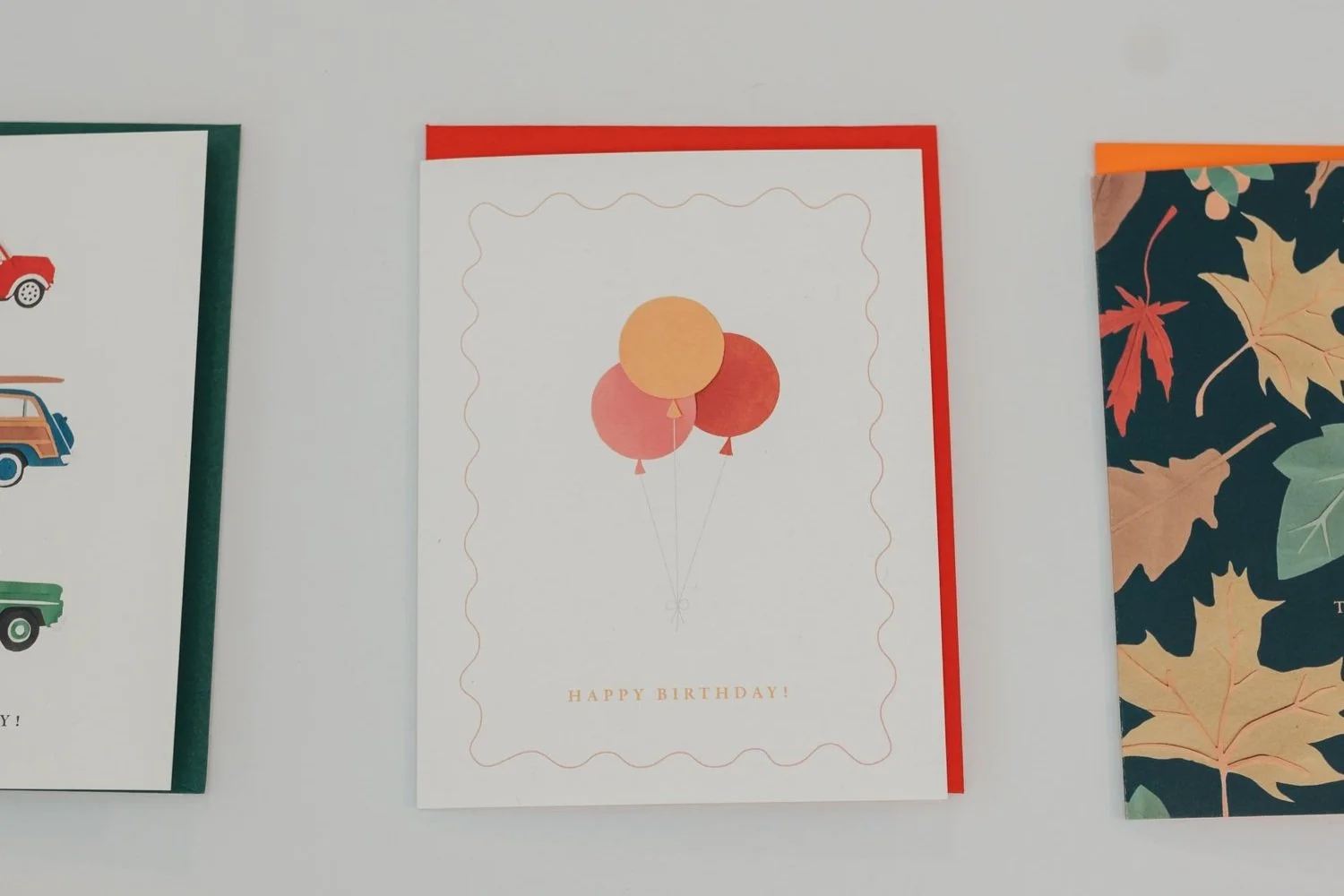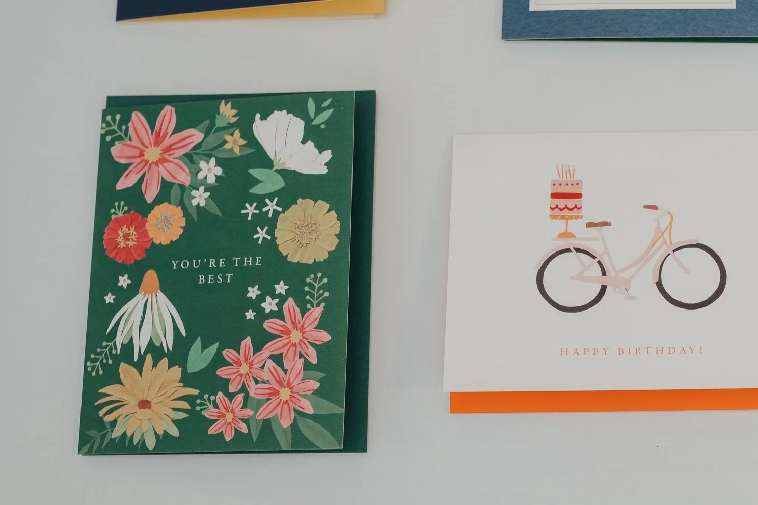 LUXURIOUS , RECYCLED PAPER MEANS EACH CARD IS AS ENVIRONMENTALLY FRIENDLY AS IT IS BEAUTIFUL. BLANK INSIDE SO YOU CAN SHARE HOW YOU FEEL. GREETING CARDS Categories: Select a Category GRATITUDE BABY BON VOYAGE CONGRATULATIONS CHRISTMAS SUPPORT THINKING OF YOU THANK YOU BIRTHDAY IN-A-PINCH PACKS GRATITUDE | BABY | BON VOYAGE | CONGRATULATIONS | CHRISTMAS | SUPPORT | THINKING OF YOU | THANK YOU | BIRTHDAY | IN-A-PINCH PACKS | Pop Champagne Congrats! $6.00 Encouragement: You are Made of the Stuff of Stars $6.00 Encouragement: Go Get 'Em, Tiger $6.00 Champagne Tower: Let's Celebrate! $6.00 Festive Fall Foliage: Thankful $6.00 Bon Voyage! Hot Air Balloon $6.00 New Year's: Clinking Champagne Glasses $6.00 You're the Best $6.00 Welcome, Baby $6.00 Pink Woodblock Print Birthday Card $6.00 Blue Woodblock Print Birthday Card $6.00 Birthday Party Balloons Card $6.00 Marigolds: Thinking of You $6.00 Primula Birthday Card $6.00 Cars Birthday Card $6.00 Vintage Wagon Birthday Card $6.00 Blue Thank You $6.00 Scotty Dog Birthday Card $6.00 A Dino-Mite Birthday $6.00 Scotty Dog Sending Love $6.00 Pirate Mouse Birthday Card $6.00 Make a Birthday Splash! $6.00 Pink Birthday Bike $6.00 Blue Marigold: Thank You $6.00 So Sweet $6.00 Blue Bicycle Thank You $6.00 Yellow Marigold: In My Thoughts $6.00 Geranium Thinking of You $6.00 Oranges Thinking of You $6.00 Christmas Candles $6.00 Christmas Pick Up $6.00 Vintage Christmas Tree Ornaments $6.00 Christmas Tree and Car $6.00 Noel Angel $6.00 Christmas Candle $6.00 Poinsettia $6.00