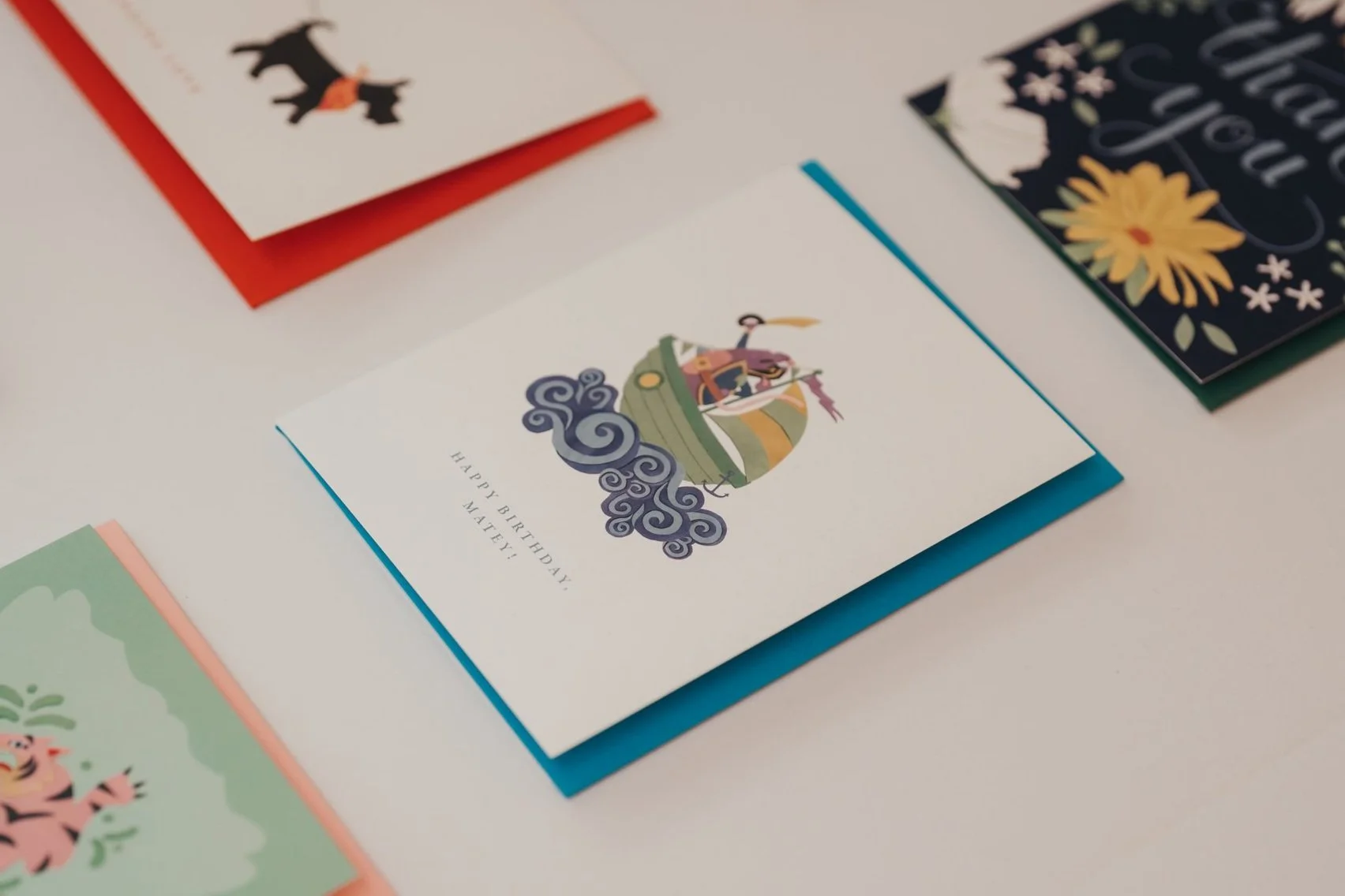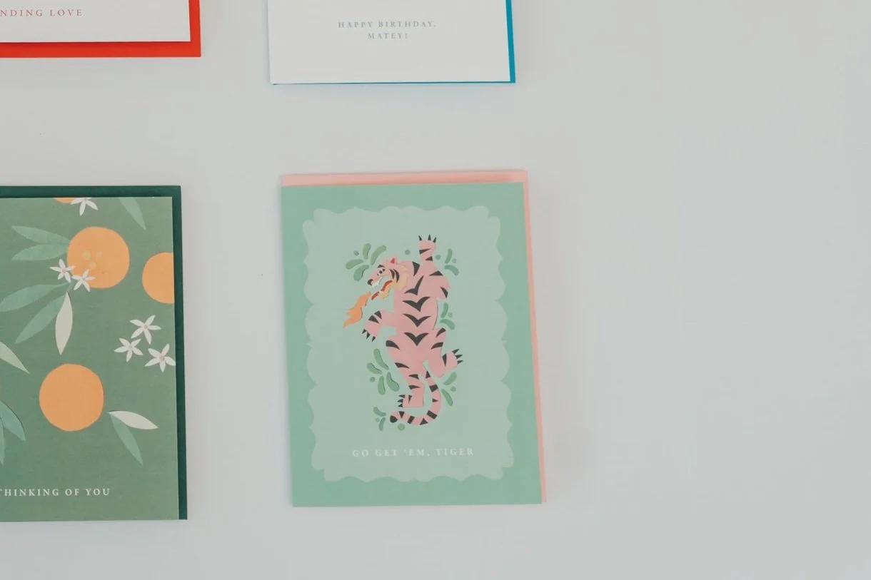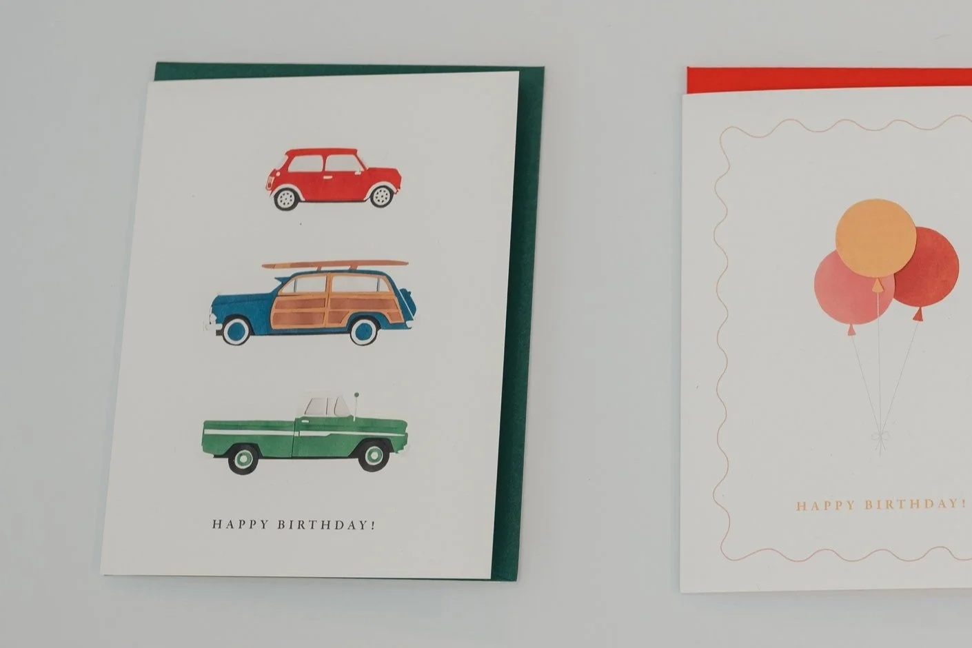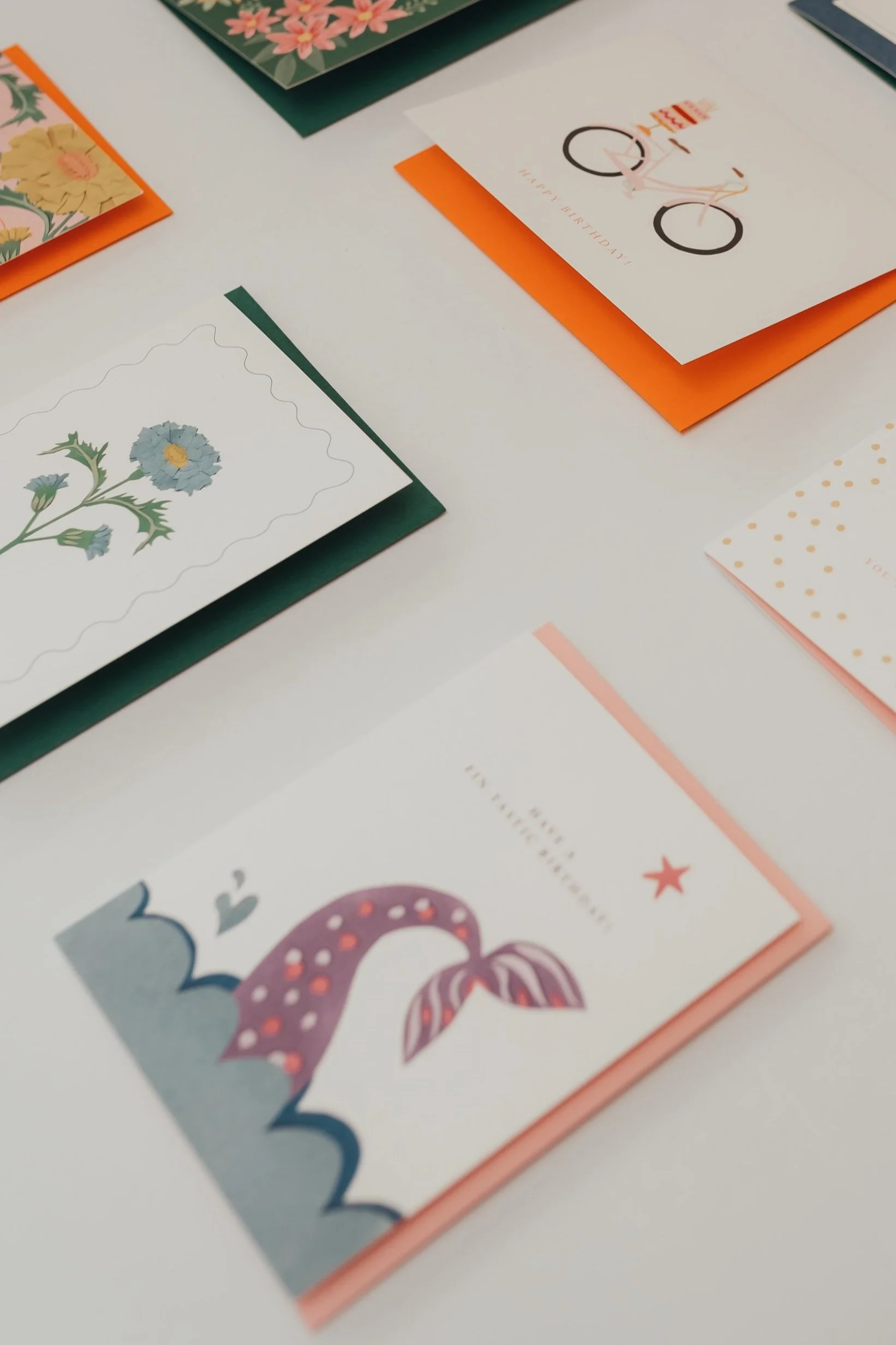 LUXURIOUS , RECYCLED PAPER MEANS EACH CARD IS AS ENVIRONMENTALLY FRIENDLY AS IT IS BEAUTIFUL. BLANK INSIDE SO YOU CAN SHARE HOW YOU FEEL. GREETING CARDS Categories: Select a Category GRATITUDE BABY BON VOYAGE CONGRATULATIONS CHRISTMAS SUPPORT THINKING OF YOU THANK YOU BIRTHDAY IN-A-PINCH PACKS GRATITUDE | BABY | BON VOYAGE | CONGRATULATIONS | CHRISTMAS | SUPPORT | THINKING OF YOU | THANK YOU | BIRTHDAY | IN-A-PINCH PACKS | Pop Champagne Congrats! $6.00 Encouragement: You are Made of the Stuff of Stars $6.00 Encouragement: Go Get 'Em, Tiger $6.00 Champagne Tower: Let's Celebrate! $6.00 Festive Fall Foliage: Thankful $6.00 Bon Voyage! Hot Air Balloon $6.00 New Year's: Clinking Champagne Glasses $6.00 You're the Best $6.00 Welcome, Baby $6.00 Pink Woodblock Print Birthday Card $6.00 Blue Woodblock Print Birthday Card $6.00 Birthday Party Balloons Card $6.00 Marigolds: Thinking of You $6.00 Primula Birthday Card $6.00 Cars Birthday Card $6.00 Vintage Wagon Birthday Card $6.00 Blue Thank You $6.00 Scotty Dog Birthday Card $6.00 A Dino-Mite Birthday $6.00 Scotty Dog Sending Love $6.00 Pirate Mouse Birthday Card $6.00 Make a Birthday Splash! $6.00 Pink Birthday Bike $6.00 Blue Marigold: Thank You $6.00 So Sweet $6.00 Blue Bicycle Thank You $6.00 Yellow Marigold: In My Thoughts $6.00 Geranium Thinking of You $6.00 Oranges Thinking of You $6.00 Christmas Candles $6.00 Christmas Pick Up $6.00 Vintage Christmas Tree Ornaments $6.00 Christmas Tree and Car $6.00 Noel Angel $6.00 Christmas Candle $6.00 Poinsettia $6.00